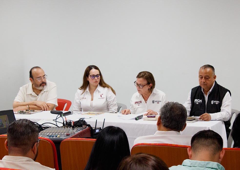 La reunión informativa fue encabezada por Grecia Jiménez Peña, Directora del Parque; María Esther Camargo Félix, Directora General del IRCA; Miguel Ancona, Coordinador Técnico del Parque y Raúl Ríos Santiago, Subdirector del IRCA.
