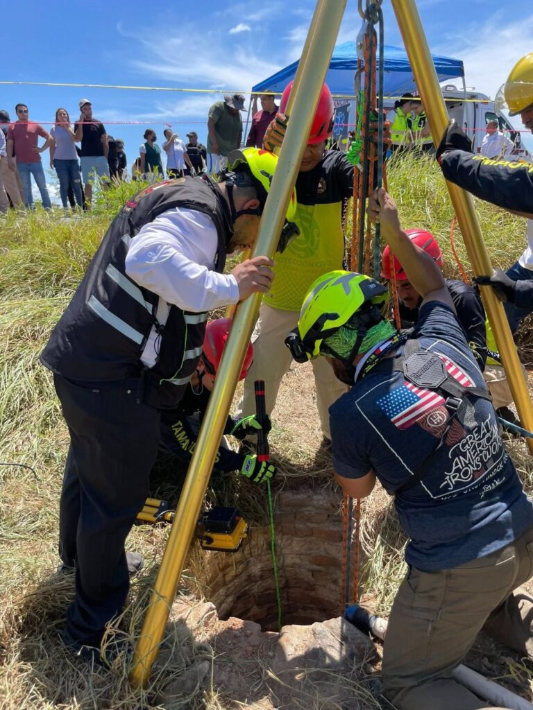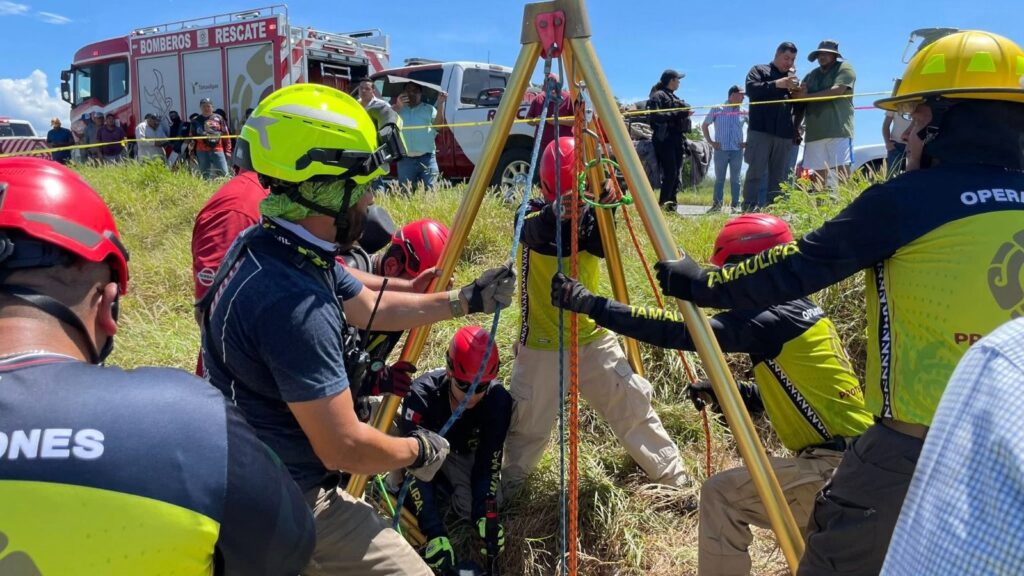 #Padilla.-#Tamaulipas.-.– Personal especializado en Rescate en Estructuras Colapsadas y Espacios Confinados llevó a cabo la extracción de dos trabajadores que lamentablemente fueron localizados sin vida al interior de un pozo de visita. Otro empleado fue trasladado de urgencia a un hospital para recibir atención médica.