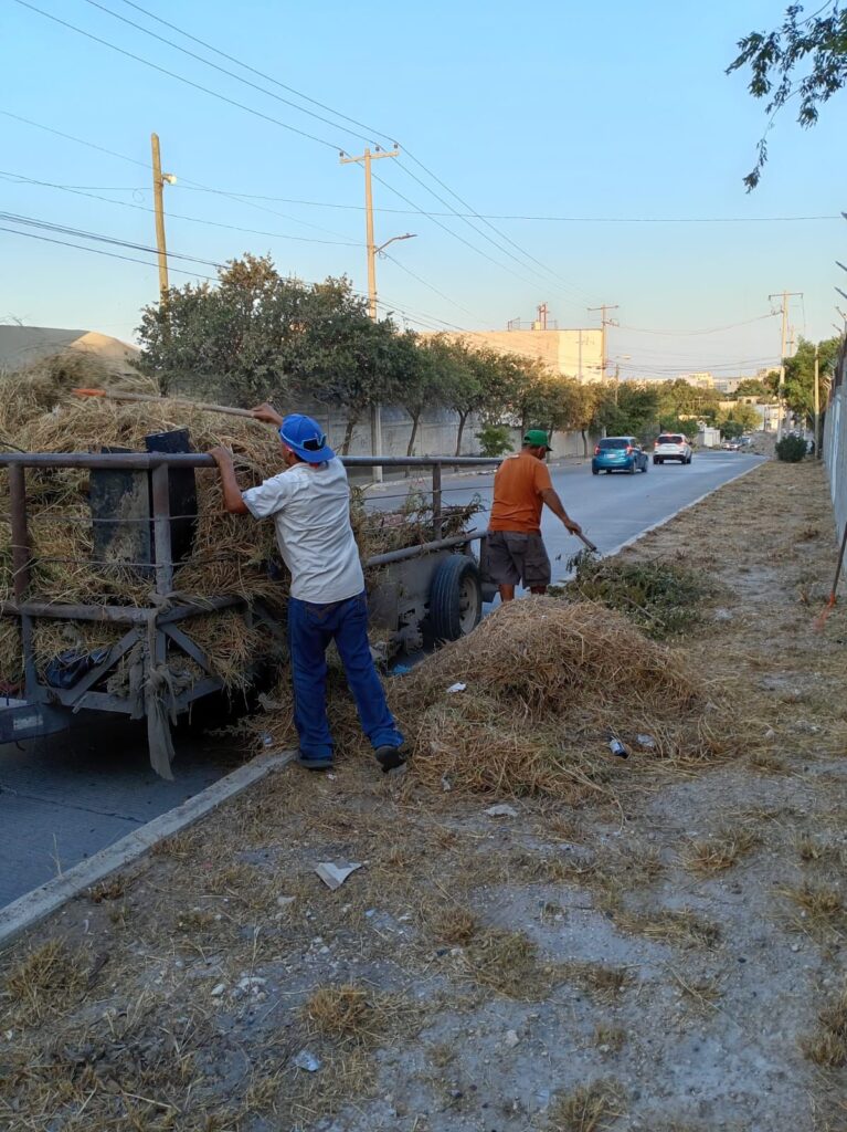 Este día se dan también algunas de las actividades con que finalizará el saneamiento de la colonia Lomas Real de Jarachina Sur, donde los trabajadores realizan el raspado y barrido de cordones y banqueta así como el levantamiento de Maleza.